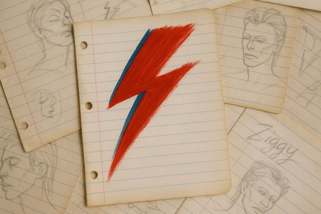 David Bowie’s immense influence as an artist extends beyond his music into his pioneering visual and creative expressions, a fact vividly illustrated by the extensive archive of around 90,000 personal items from his career. Among these, a particularly captivating piece is a 1969 childlike pencil sketch revealing Bowie’s early ideas for the album cover of “Space Oddity,” one of his landmark works that introduced the iconic astronaut character Major Tom, whom Bowie revealed bore the surname Hough. This sketch, alongside many others, reflects Bowie’s deep fascination with science fiction and futurism, themes that permeated his work and helped define his boundary-pushing artistry.