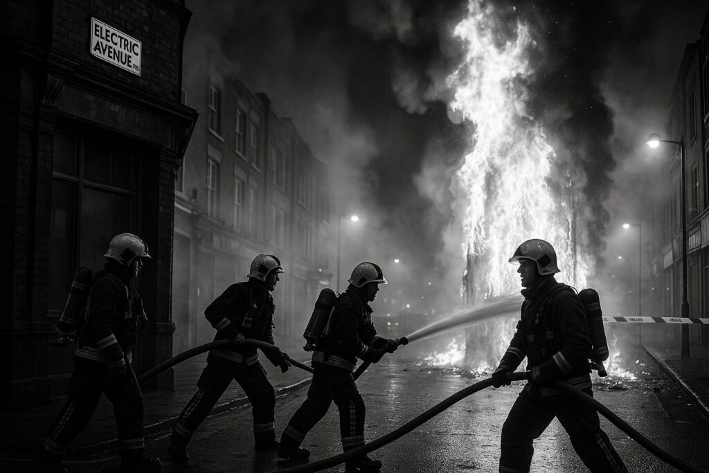 A significant fire broke out on Electric Avenue in Brixton, south London, prompting a major emergency response and the arrest of a man on suspicion of arson. The blaze began in a storage area behind shops on this bustling shopping street, which was famously immortalised in Eddy Grant’s 1983 hit song “Electric Avenue.” The fire rapidly spread to the building above the storage area, causing extensive damage that required the deployment of around 70 firefighters and ten fire engines.